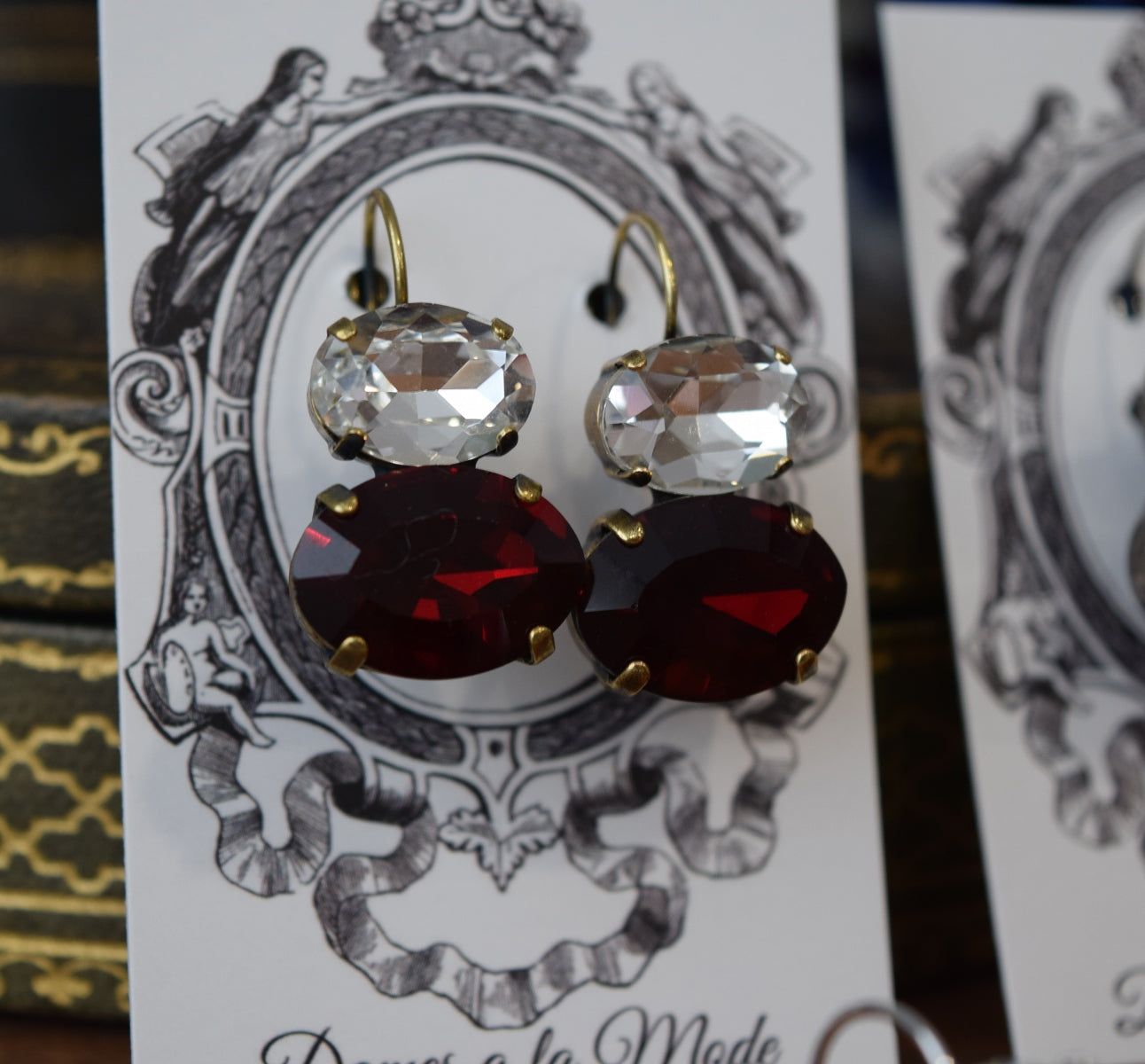 BLACK FRIDAY 2-stone Swarovski Earrings, Rosaline or Garnet