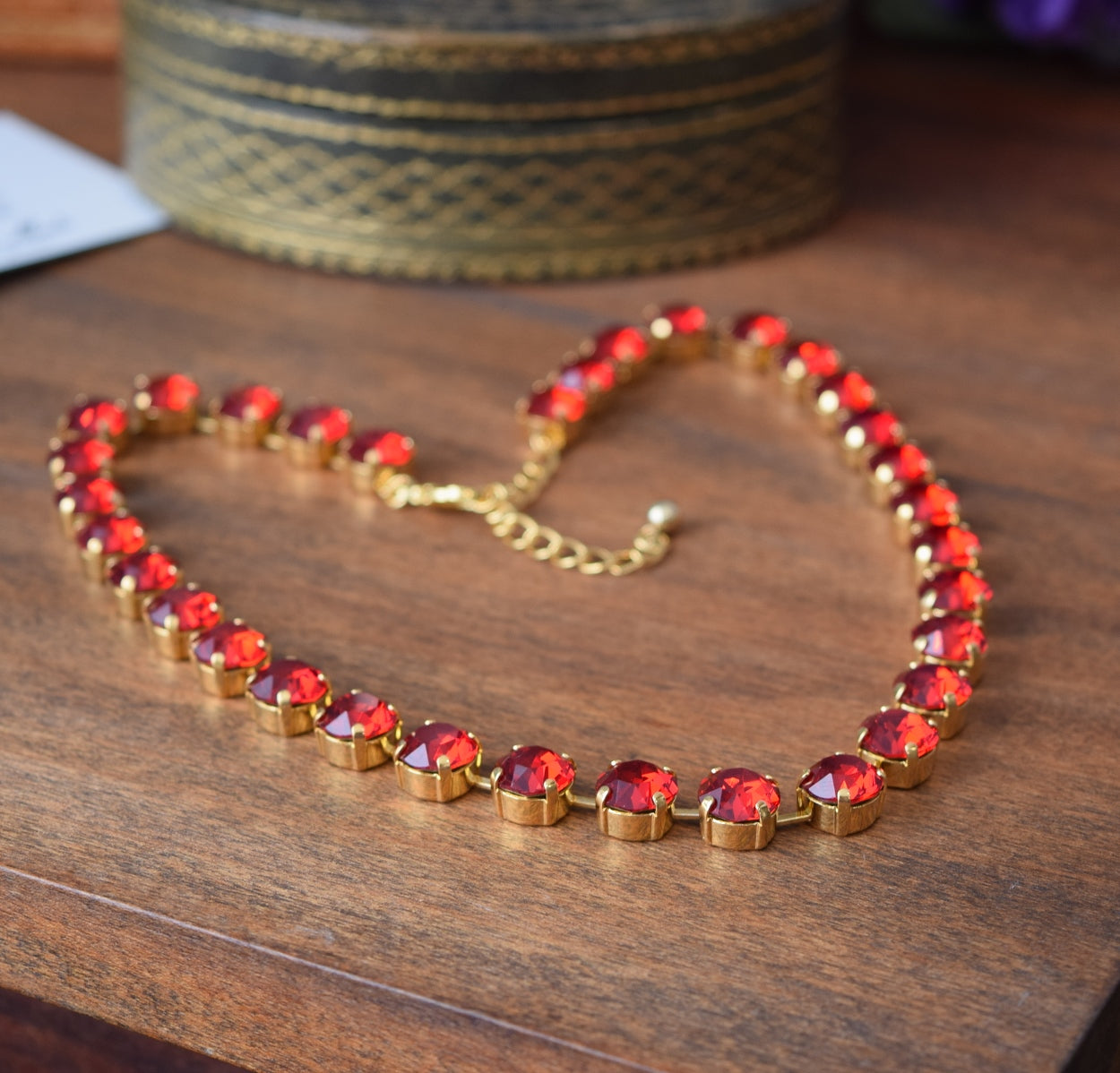 BLACK FRIDAY Aurora Crystal Ruby Red Necklace - Tiny Round