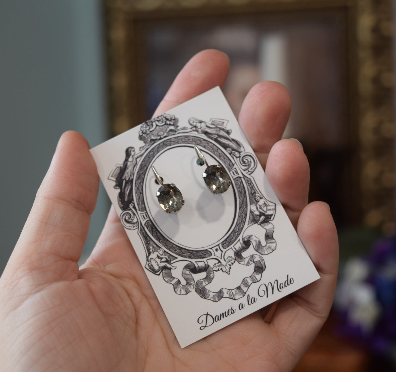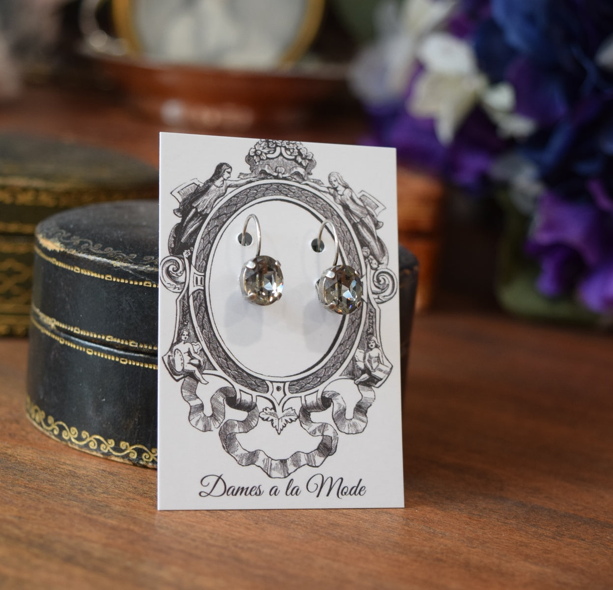 Material - Vintage Swarovski crystals in Black Diamond, Antique Silver plated settings