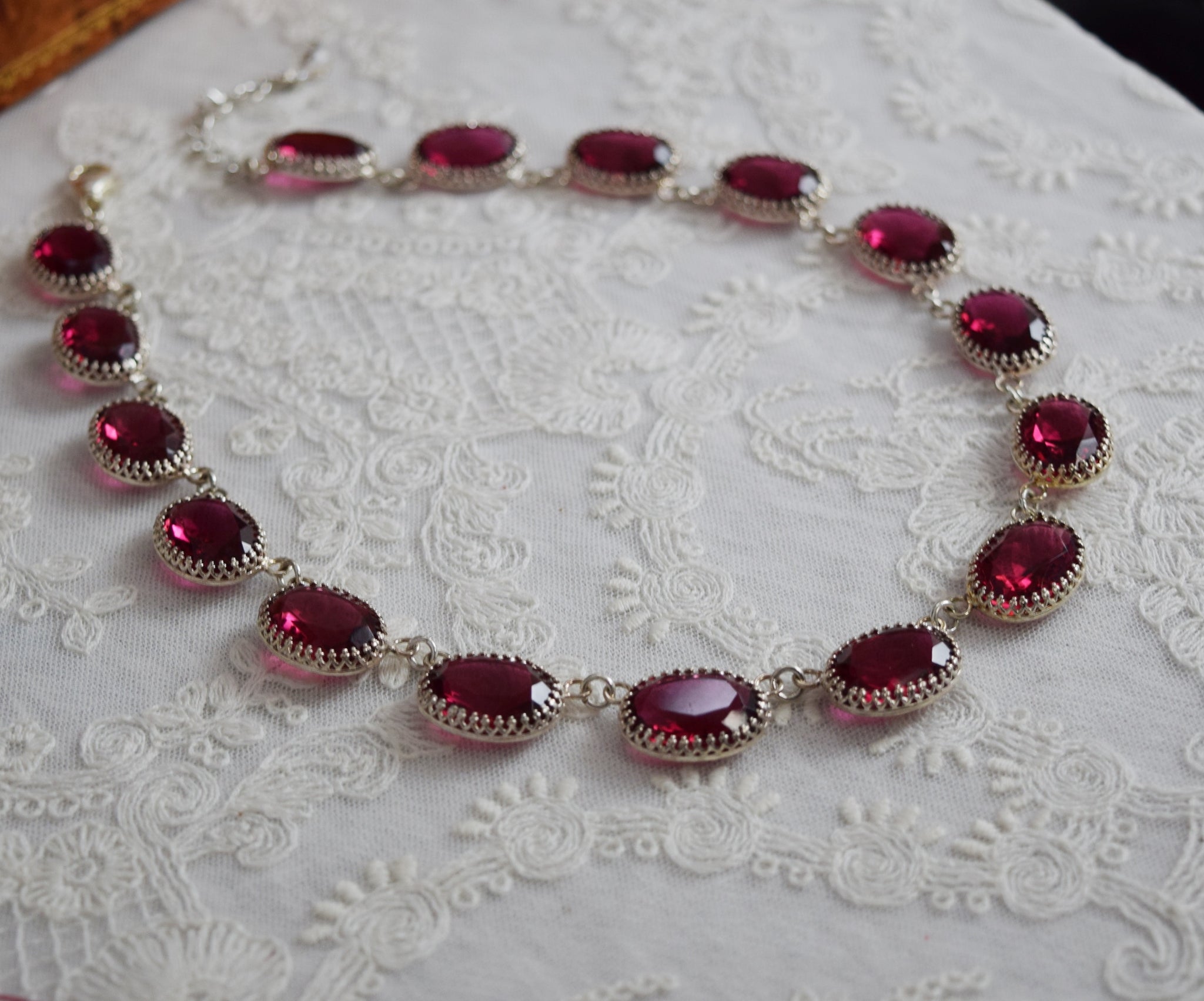BLACK FRIDAY Dark Pink Crown Necklace - Large Oval - Sample Sale