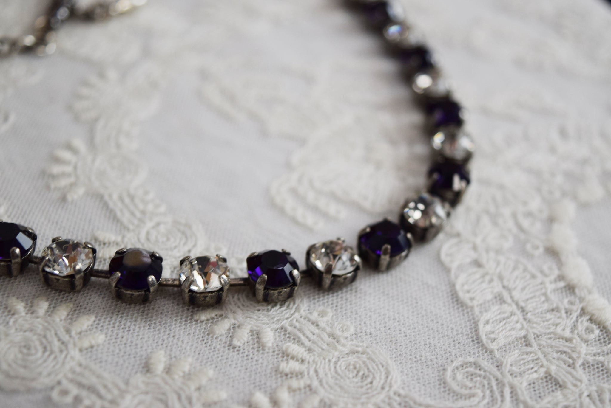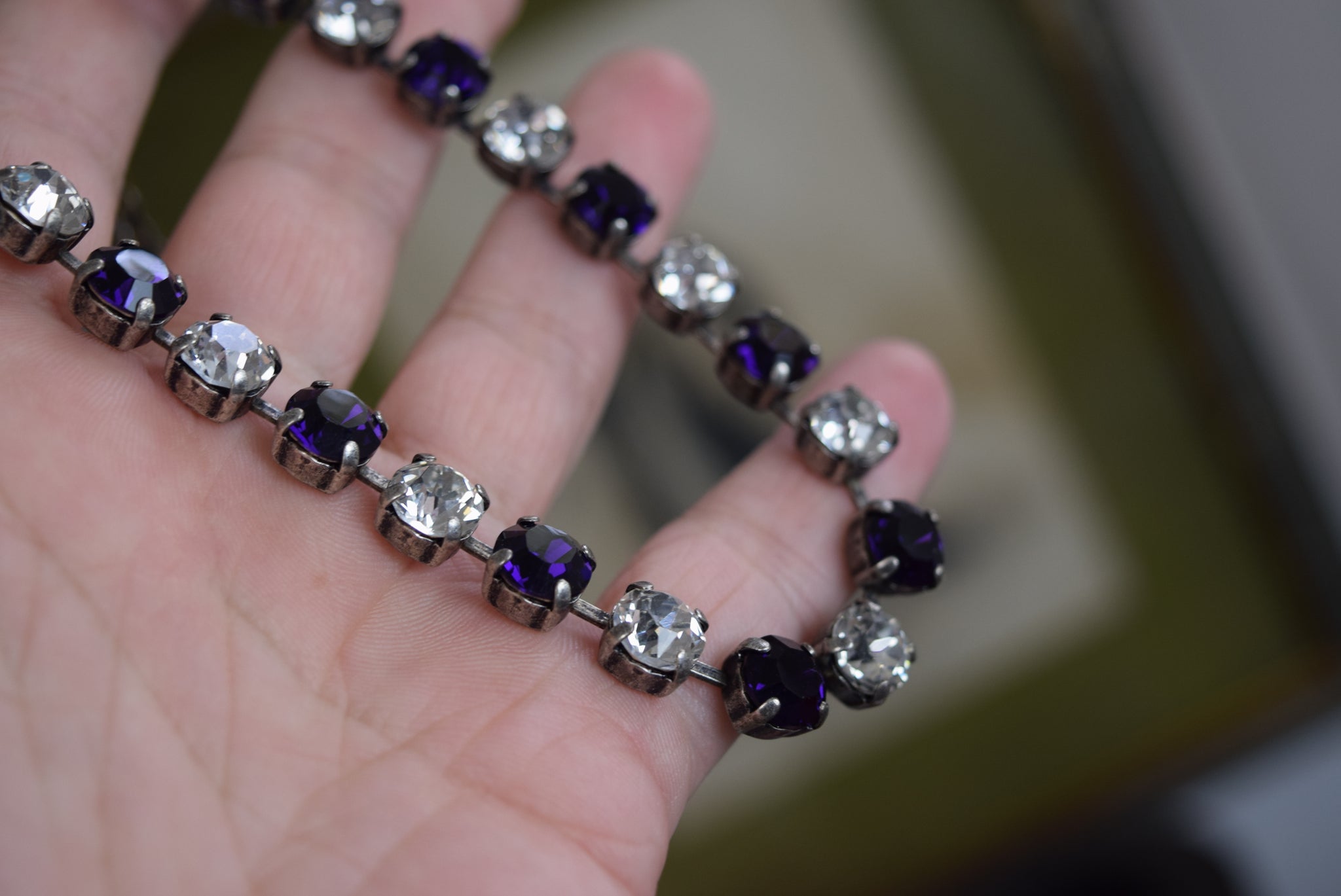 Material - Vintage Swarovski crystals in Dark Amethyst and Clear Crystal