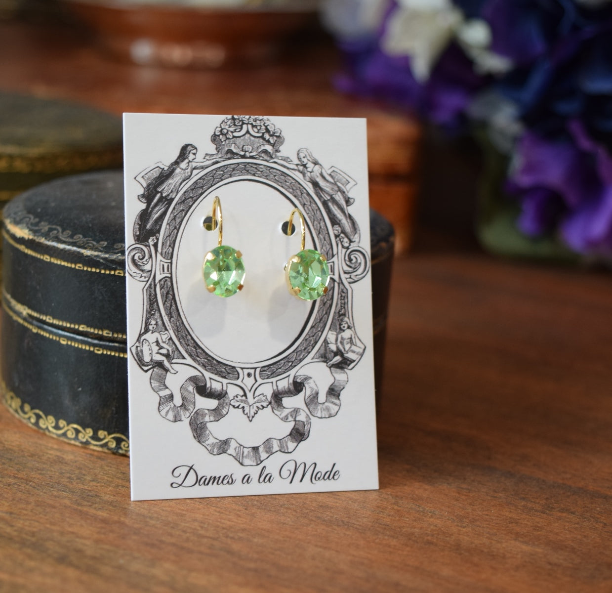 BLACK FRIDAY Mint Green Swarovski Earrings - Tiny Oval