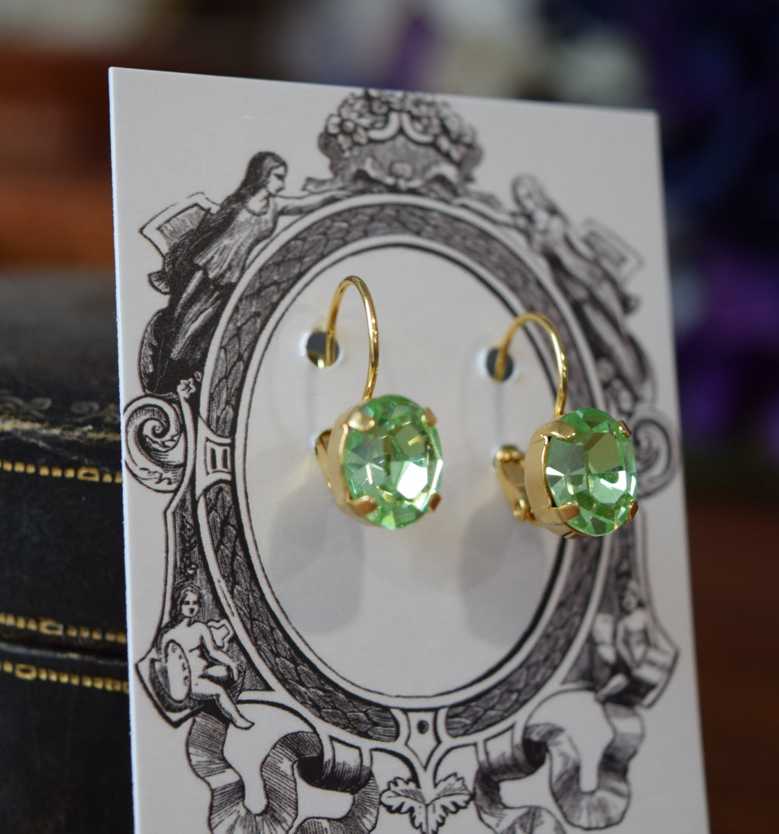 Material - Vintage Swarovski crystals in mint green, Gold plated settings