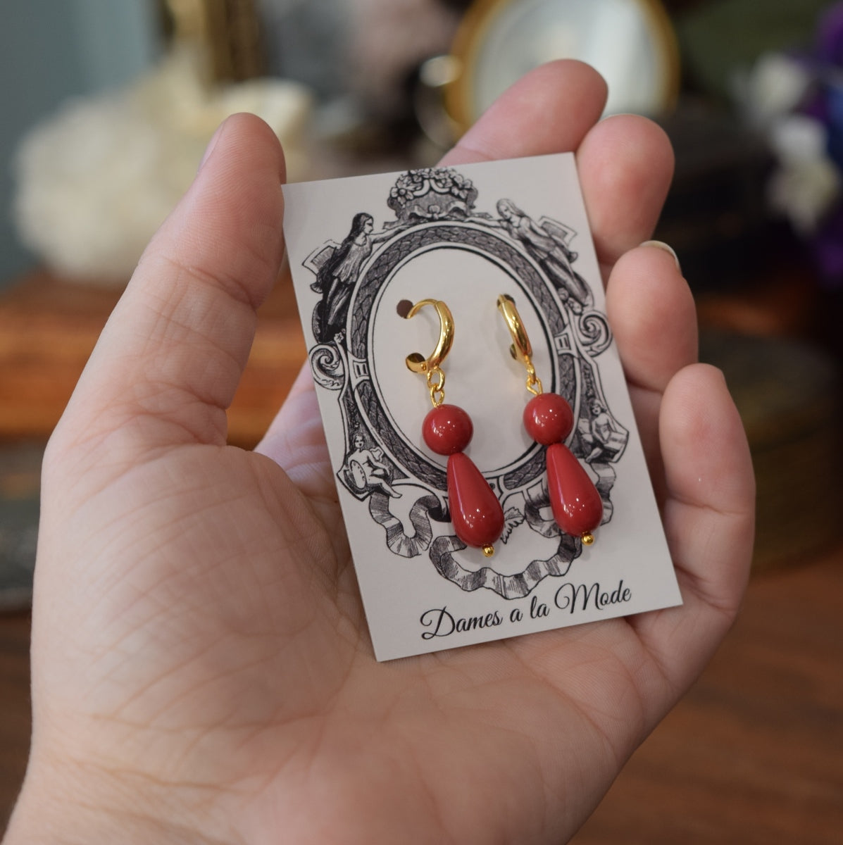 BLACK FRIDAY Red "Coral" teardrop 2-stone earrings