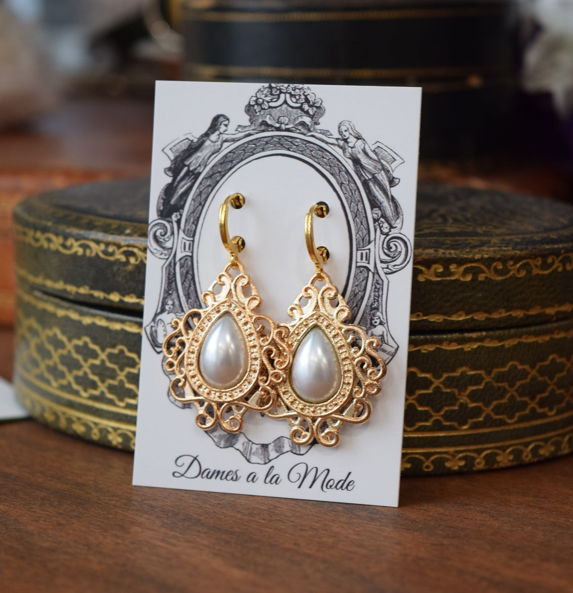 BLACK FRIDAY Renaissance Filigree Pearl Teardrops