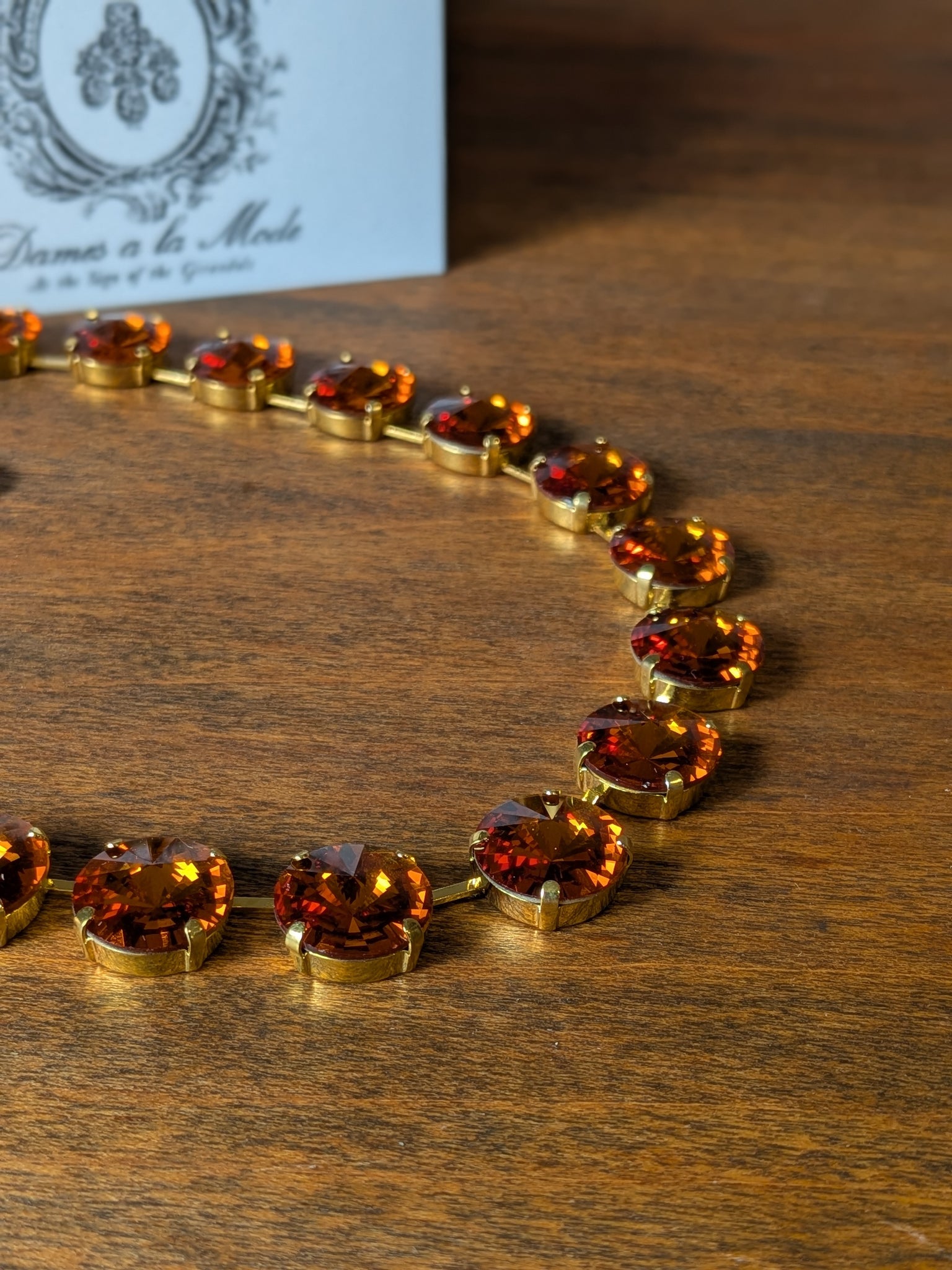 Orange Aurora Crystal Riviere Necklace - Medium Round