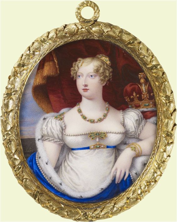 This lovely necklace is based off the one worn by Princess Charlotte Augusta in this 1814 miniature by Joseph Lee (via the Royal Collection).