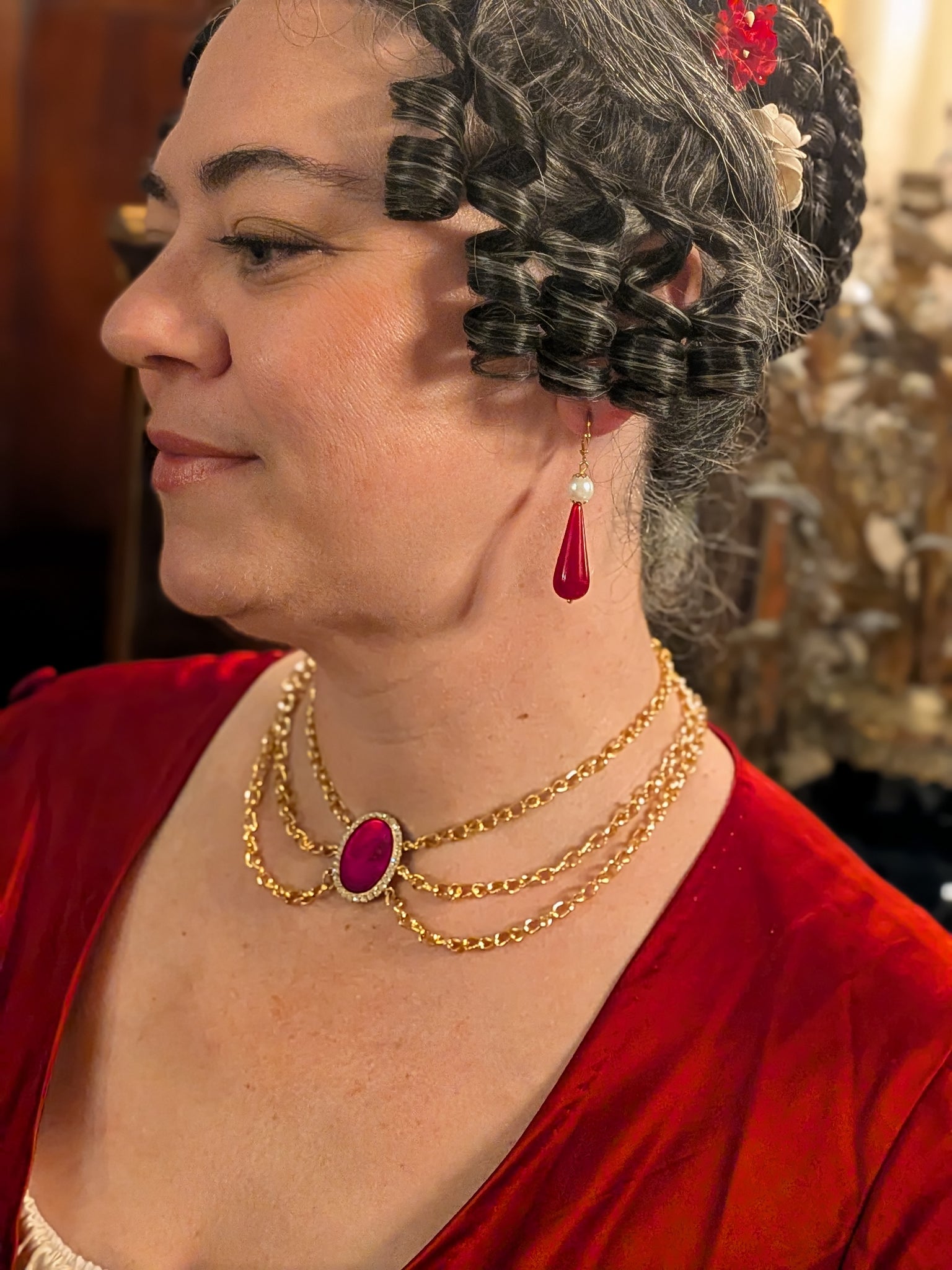 Festoon necklaces are one of the best styles of Georgian Jewelry in my opinion!  They come into fashion in the early 1790s and are the perfect accessory to the Grecian-style dresses that take over in this era.